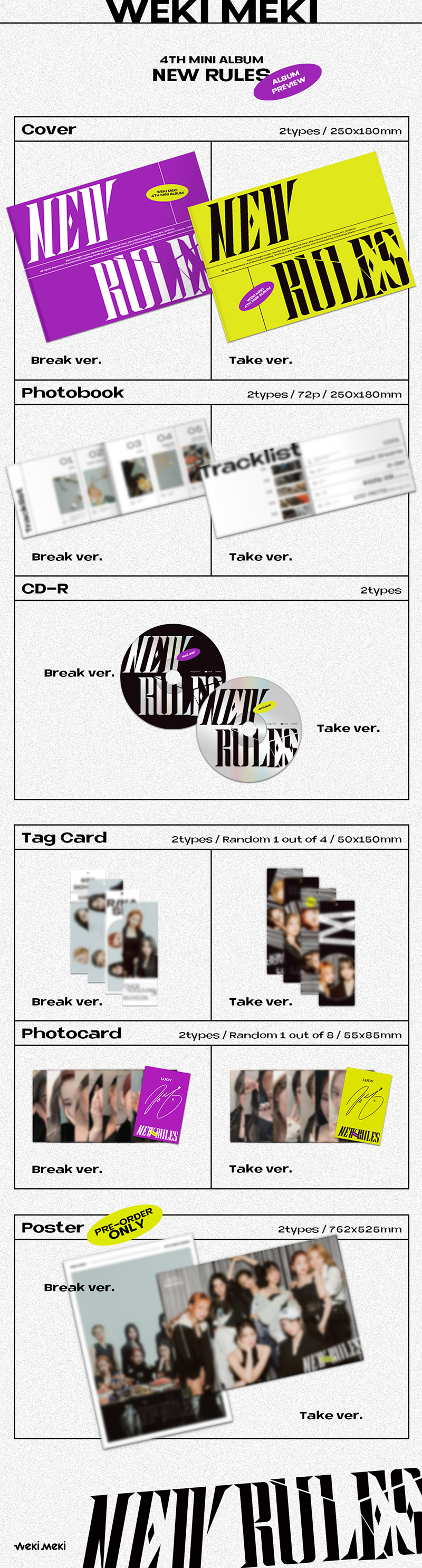 데뷔 이래 꾸준히 성장하고 있는 위키미키는 새 앨범 [NEW RULES]로 또 한 번 자신들의 스펙트럼을 확장하며 자유롭고 당당한 매력으로 위키미키의 ‘Girl Spirit’이 무엇인지 확실히 각인시킬 것이다.