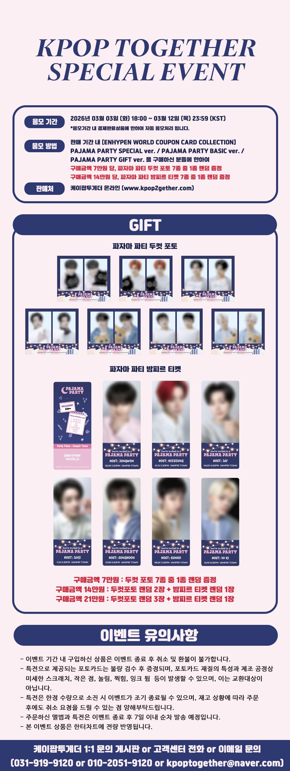 다양한 파자마 파티 아이템이 가득한 엔하이픈 쿠폰카드 시리즈와 함께 풍성한 게임 재화, 그리고 SP CARD (스페셜 카드)의 특별한 행운도 경험해 보세요!